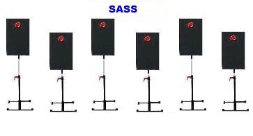 accommodate 1, 2 or 3 pairs (six total shooters). The paired targets are spaced