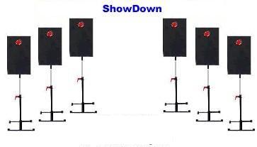 the traditional and popular ShowDown game. Two shooters face three targets each. One of