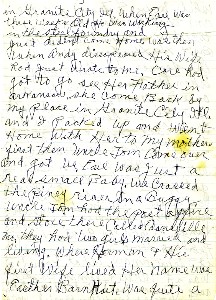 Heppner Oregon 10-23-1985 Dear Robert and all of the Crismons, I am sorry I haven't written sooner but so much going on and sickness. I never had high blood pressure all these years then had a spell of food poisoning and blood pressure had to be put under control so now it's normal. I will start with myself. I was born February 15, 1895 Sara Jane Canoy at Blooming Rose, Missouri. Was raised there. My brothers went to Montana to file on land and I went out there to work for them but went back home. And when I went back your Uncle and family was living on our old place next to Mother and Step Dads place. So Herman came to visit them and they all came to our house and that was the way I met him. I never knew he had been married as he had come from St. Louis to Uncle Tom and Aunt Millie Dixon as Cora was there. They had a store and post office and Herman had been living there when he was around and he had horses so I think he had been there a time. I went back to Montana. So we wrote and fell in love. Your Dad and Herman was living together in St. Louis and Herman came to Montana and your Dad reenlisted in the Army, that was 1917. We were married in Sidney, Montana on June 25, 1917 and came back to St. Louis and lived in Granite City, Illinois. Herman worked in the big steel foundry all through the war. Herman was real close to his cousin Charley Dixon. Charley and wife had a little girl Geneva. Charley and his wife both died young. I kept track of Geneva for several years after she married. I think you have also. My son Earl Homer Crismon was born May 5, 1919. Herman left us in Granite City, Illinois when Earl was three weeks old. He was working in the steel foundry and just didn't come home. This was when Andy disappeared, his wife had just wrote to me. Cora had to go to see her father in Arkansas. She come back by my place in Granite City, Illinois and I packed up and went home with her to my mother's first and then Uncle Tom come over and got us. Earl was just a real small baby. We crossed the Piney River in a buggy. Uncle Tom had the post office and store there called Adamsville, Missouri. They had two girls married and living where Herman and his first wife had lived. Her name was Esther Barnhart. It was quite a while before I found out he and that woman Betty White had left me together. She had a little boy and her husband was in the service in Germany. When he come home he come over to Granite City and said if I find them it will be their last breath. I said no you have your son to raise. I could write on and on but will stop. Earl and wife just got home. I am sorry we never met. Maybe where your family reunion is Earl can go. I had my 91 birthday February 15. How I ever made it I do not know. What town was it where Herman passed away? A person could find the undertaker and find where he was buried. Write me. Best wishes, Aunt Sara. |