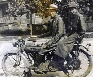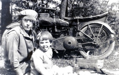 The photos below tell an interesting story. The first photo is of Sara and Herman on their wedding day and what a handsome couple they made! The next photo is of Herman and Sara on the Harley Davidson motorcycle Herman rode from St. Louis to Montana to claim his bride. They purchased another motorcycle in Montana and Sara rode it on their trip back to St. Louis. The final photo is of Sara, Earl and Sara's motorcycle around 1923. A woman riding a motorcycle in the early 1900s was almost unheard of. Sara was certainly before her time; we wonder if she had any tattoos? Sara Jane Canoy passed away on February 19, 1997 at the age of 102. Her will to continue living began to fade when her only child, Earl, unexpectedly died seven months to the day earlier.